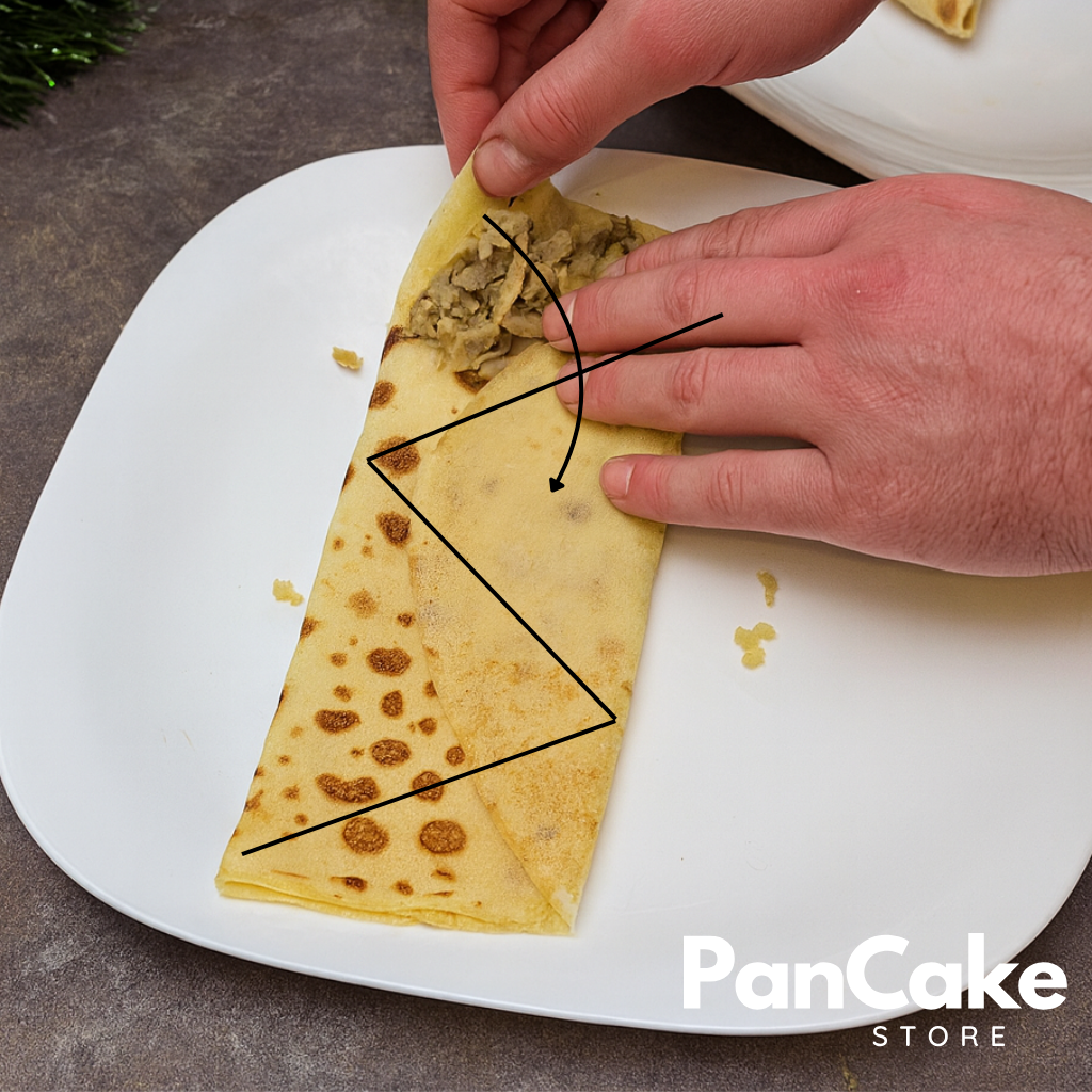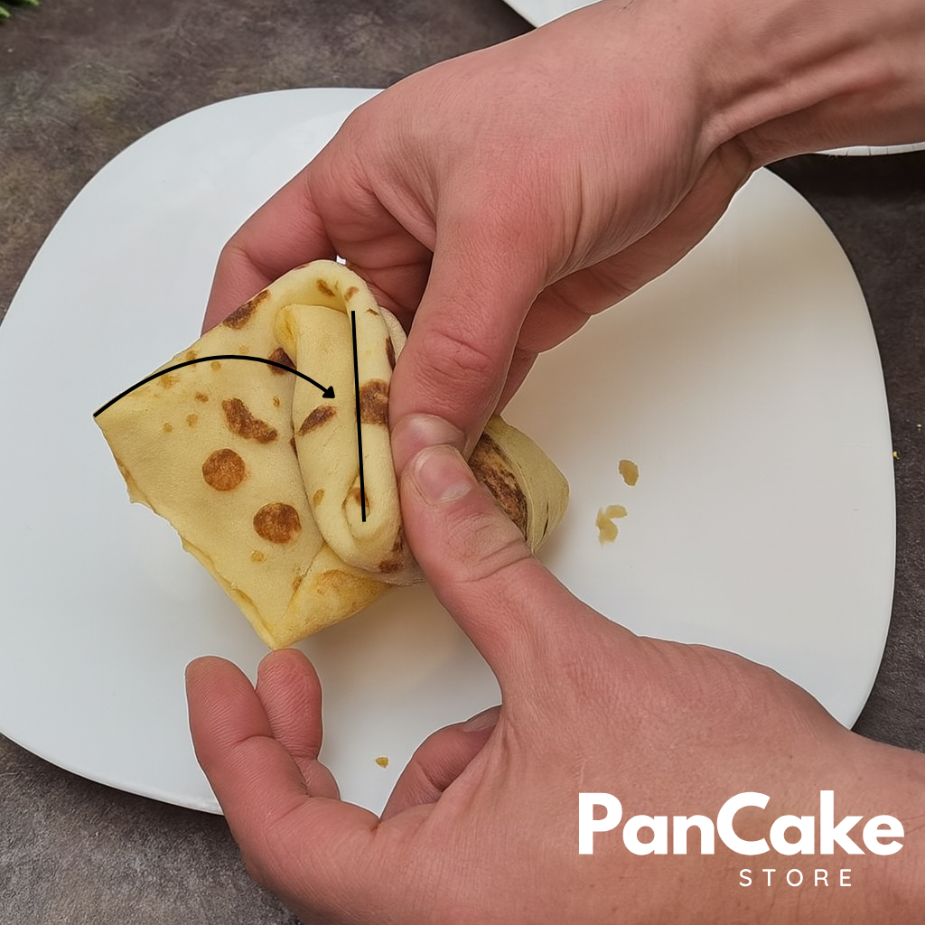 3. Aby zamknąć trójkącik włóż ostatnią cześć naleśnika pomiędzy dwie warstwy.
