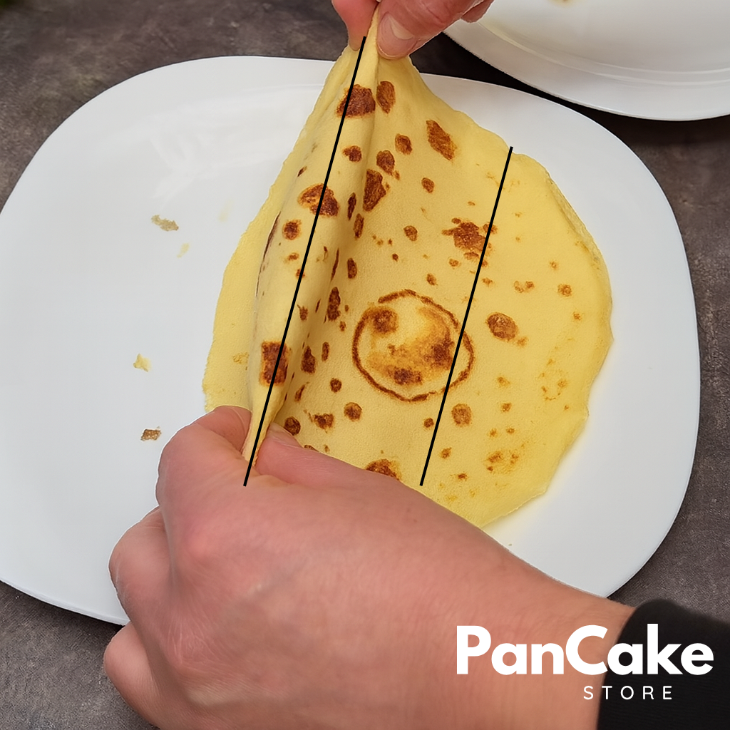 - Naleśnik złóż wzdłuż linii. Jedną część podwiń pod spód, a drugą na wierzch.