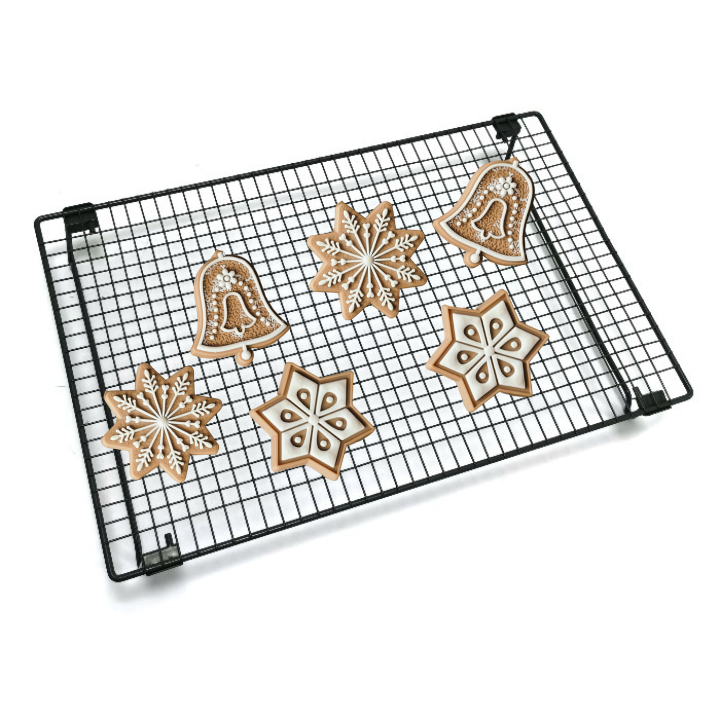 Prostokątna kratka do studzenia wypieków z rozkładanymi nóżkami to niezastąpiony pomocnik w każdej kuchni. Wykonana z wytrzymałego metalowego drutu w eleganckim czarnym kolorze, ułatwia szybkie i równomierne studzenie ciast oraz ciasteczek.