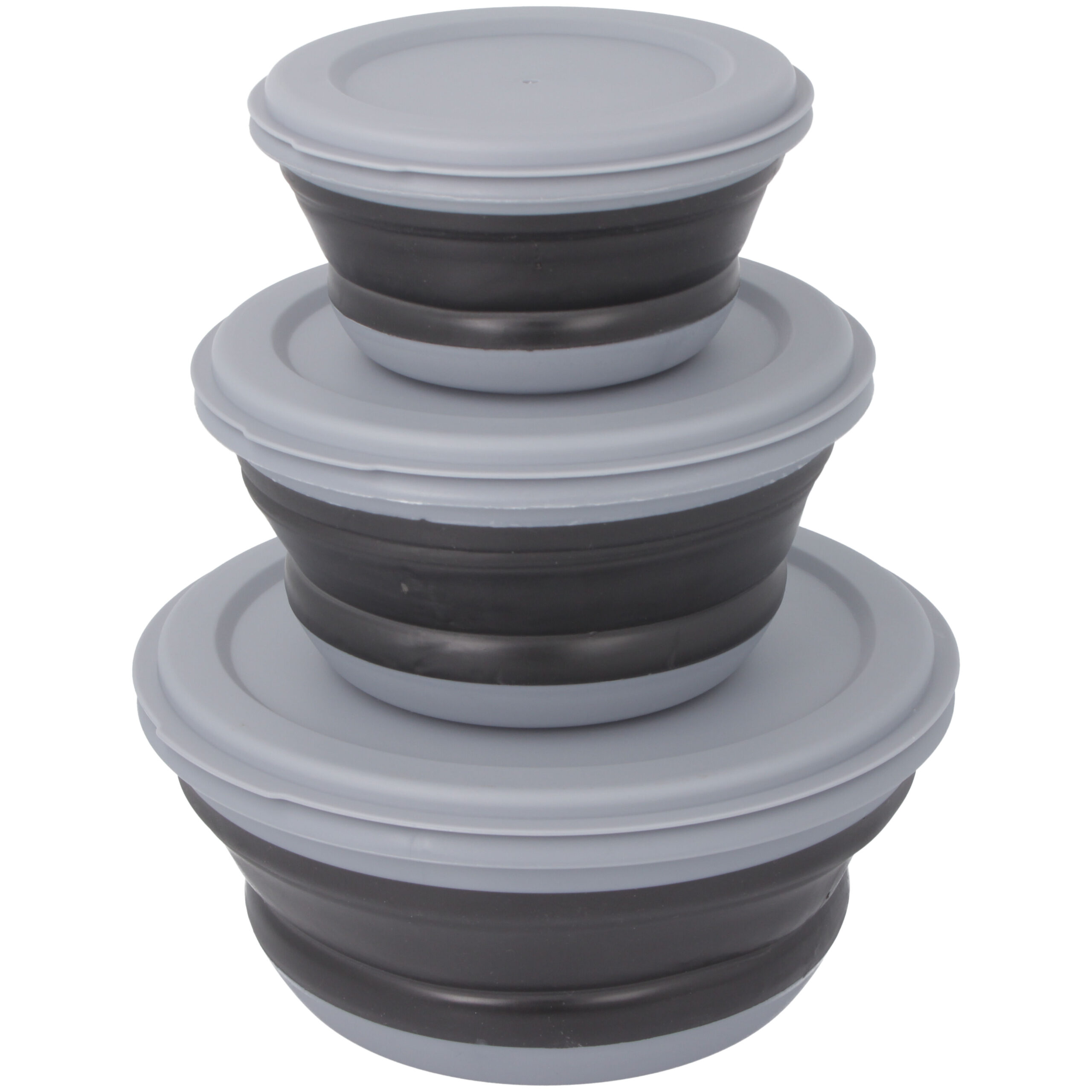 Składane miski silikonowe z pokrywkami – zestaw 3 sztuki (szare)