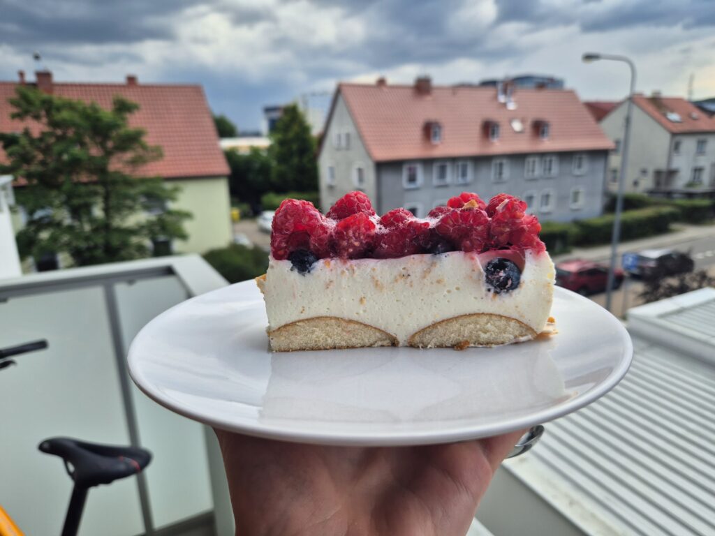Z całej porcji ciasta (ok. 1435 g) wyjdzie 8 solidnych kawałków — idealnych np. na letnie przyjęcie.